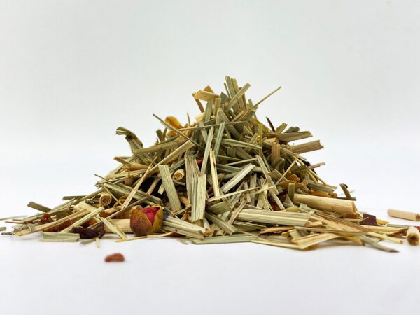 Opis: Trawa cytrynowa, płatki róży, białe kwiaty hibiskusa, kwiaty i owoce granatu, aromat. Bez kofeiny. Deklaracja wartości odżywczych na 100 ml: