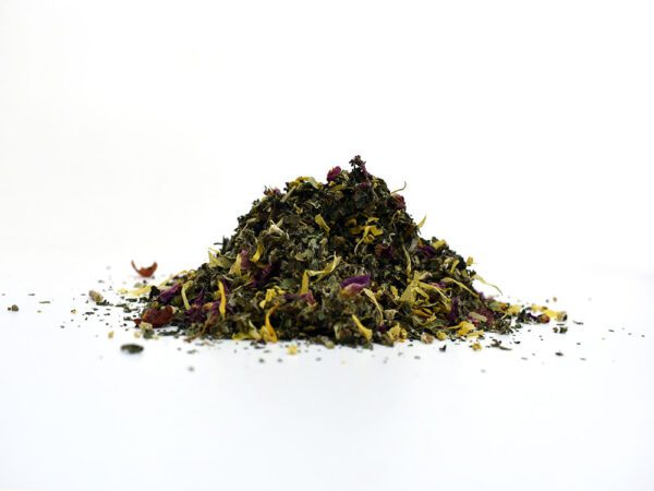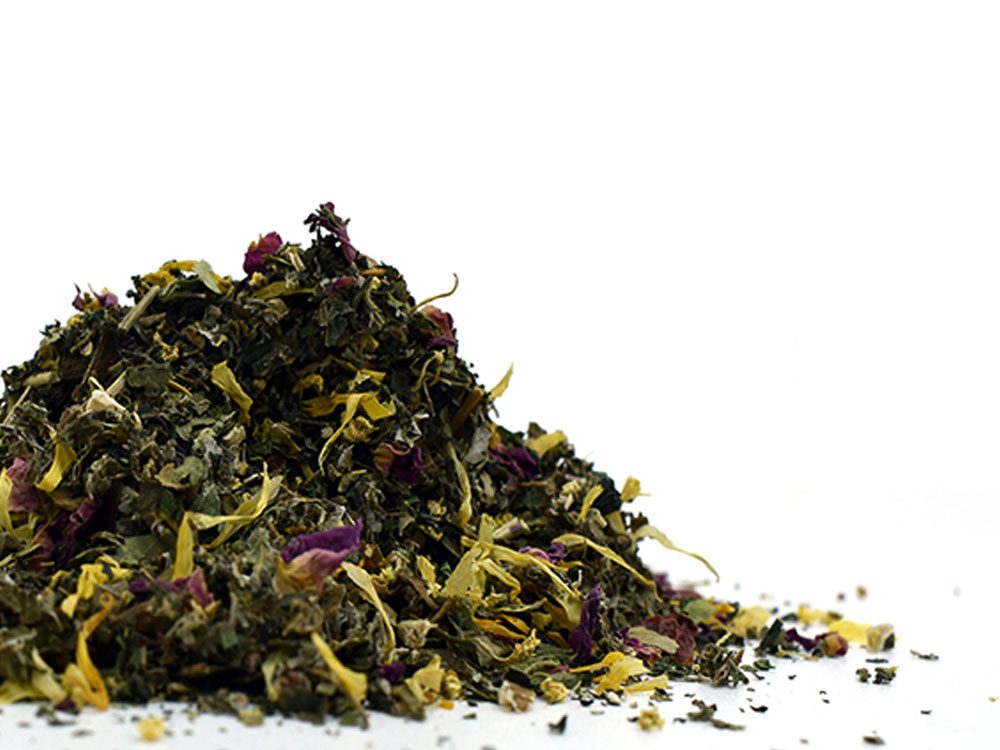 Opis: Liście jeżyny i pokrzywy, korzeń mniszka lekarskiego, liście brzozy, guarana, kwiat bzu czarnego, kwiaty róży i nagietka. Zawiera kofeinę. Deklaracja wartości odżywczych na 100 ml: